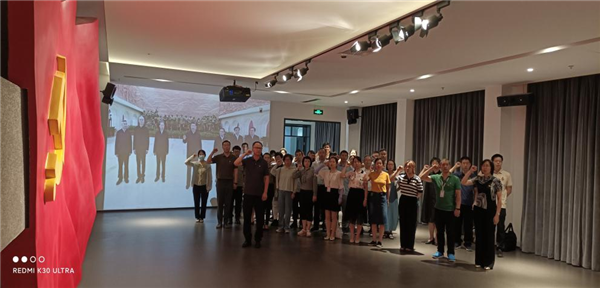 在肅穆的宣誓大廳中,全體黨員在黨旗下重溫入黨誓詞,再次表達了愿為共產主義事業奮斗終身的決心。
