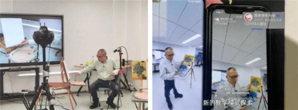 課程采用線(xiàn)下線(xiàn)上同步教學(xué),共計(jì)7節(jié)課。線(xiàn)下面授班在國(guó)家老年大學(xué)魏公村校區(qū)進(jìn)行,學(xué)員30人,平均年齡60歲,共完成145幅油畫(huà)作品。線(xiàn)上班以VR直播的形式,將課堂實(shí)況免費(fèi)呈現(xiàn),并為在線(xiàn)學(xué)習(xí)者單獨(dú)開(kāi)設(shè)直播通道進(jìn)行示范和組群輔導(dǎo),超6萬(wàn)人次在線(xiàn)參與,在線(xiàn)學(xué)習(xí)者與老師積極互動(dòng),老師也為在線(xiàn)學(xué)習(xí)者答疑解惑,最后完成油畫(huà)作品560多幅。