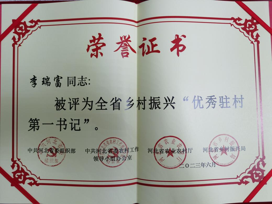李瑞富同志獲評河北省鄉村振興“優秀駐村第一書記”