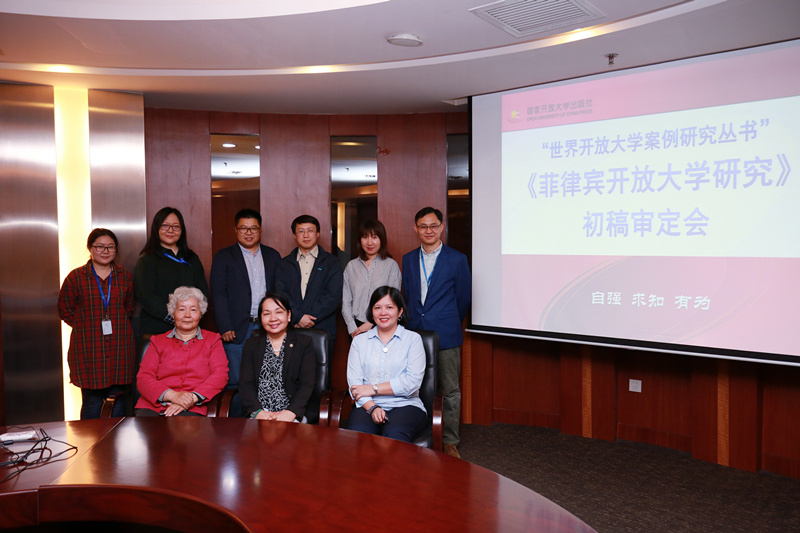 2019年4月23日上午,教育研究院和出版社召開了《世界開放大學案例研究叢書 》第二批(中英文版)之一的《菲律賓開放大學研究》書稿審定會。亞洲開放大學協會主席、菲律賓開放大學校長Melinda dP-Bandalaria教授和國家開放大學國際交流與合作處原處長李亞婉研究員共同作為評審專家出席了書稿評審會。國家開放大學出版傳媒集團副總編馮琳,教育研究院國際與比較教育研究所副所長王向旭,出版社綜合(學術)事業部主任劉志君,策劃編輯辛穎,以及菲律賓開放大學信息化辦公室主任Joane Serrano博士,北京開放大學楊波博士、史森博士等中菲雙方的作者團隊成員參加了本次會議。會議由王向旭主持。