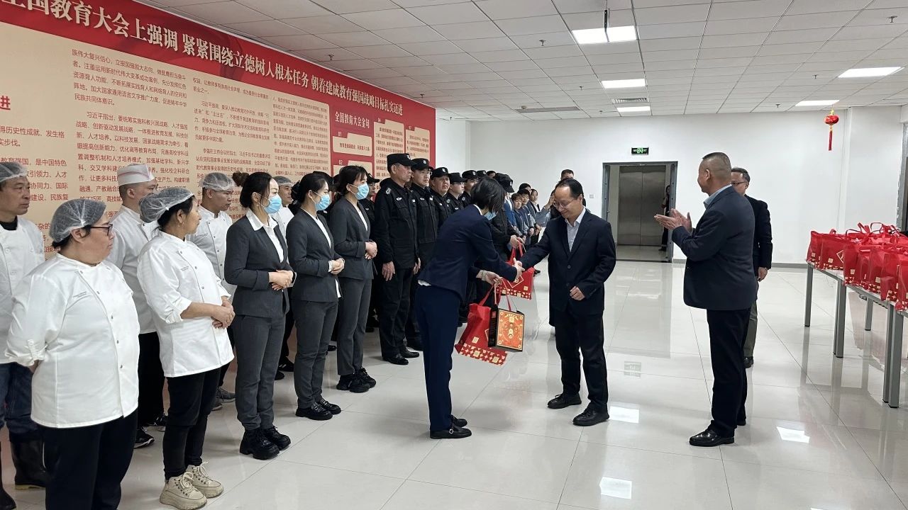 新春送祝福,慰問暖人心。蛇年春節來臨之際,國家開放大學副校長周天明代表學校黨委和領導班子慰問春節期間值守一線的后勤保障團隊,后勤保衛處處長肖國強陪同慰問,副處長巴依爾、王婷,以及科室相關負責人隨同。