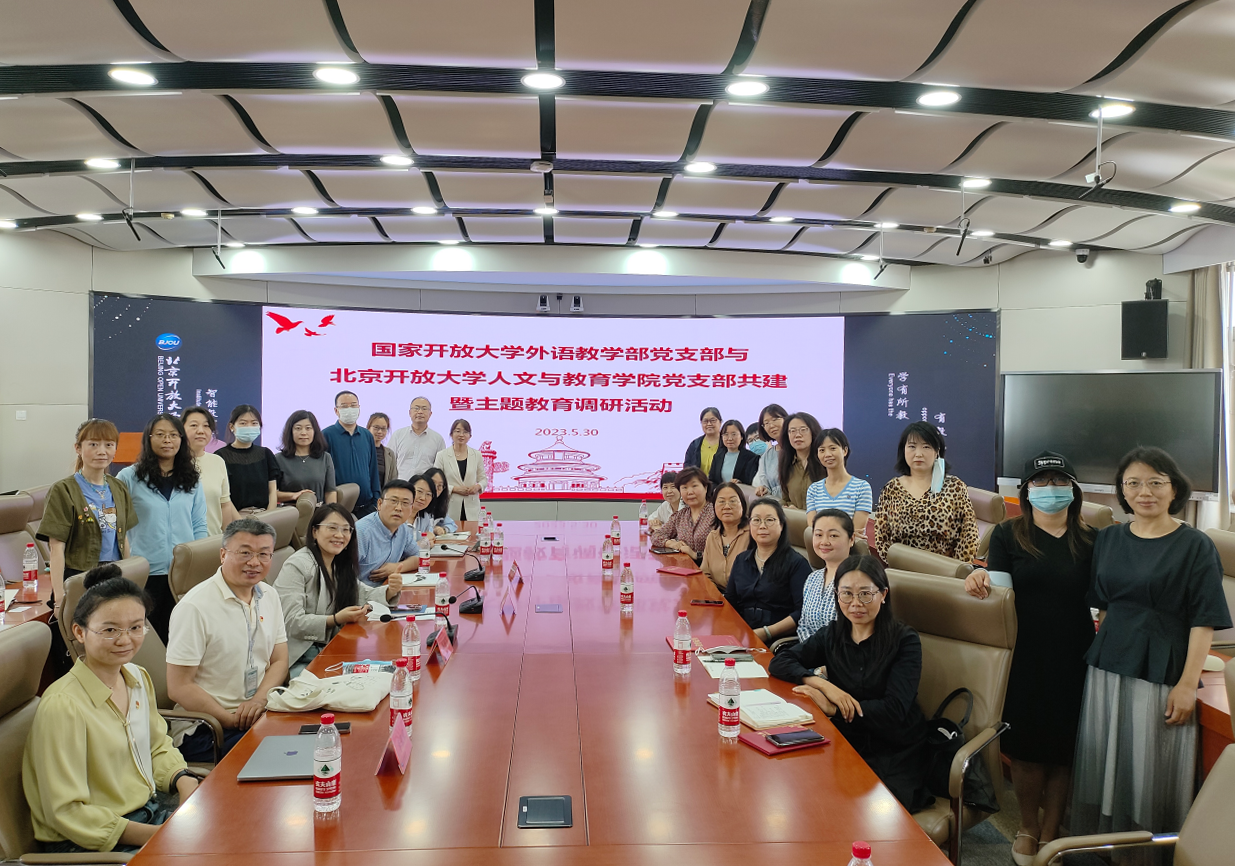 5月30日,國(guó)家開(kāi)放大學(xué)外語(yǔ)教學(xué)部黨支部赴北京開(kāi)放大學(xué)與北京分部人文與教育學(xué)院黨支部開(kāi)展主題教育聯(lián)學(xué)共建暨教學(xué)改革調(diào)研交流活動(dòng)。國(guó)家開(kāi)放大學(xué)外語(yǔ)教學(xué)部部分黨員教師與北京分部的30余位教師參加此次活動(dòng)。