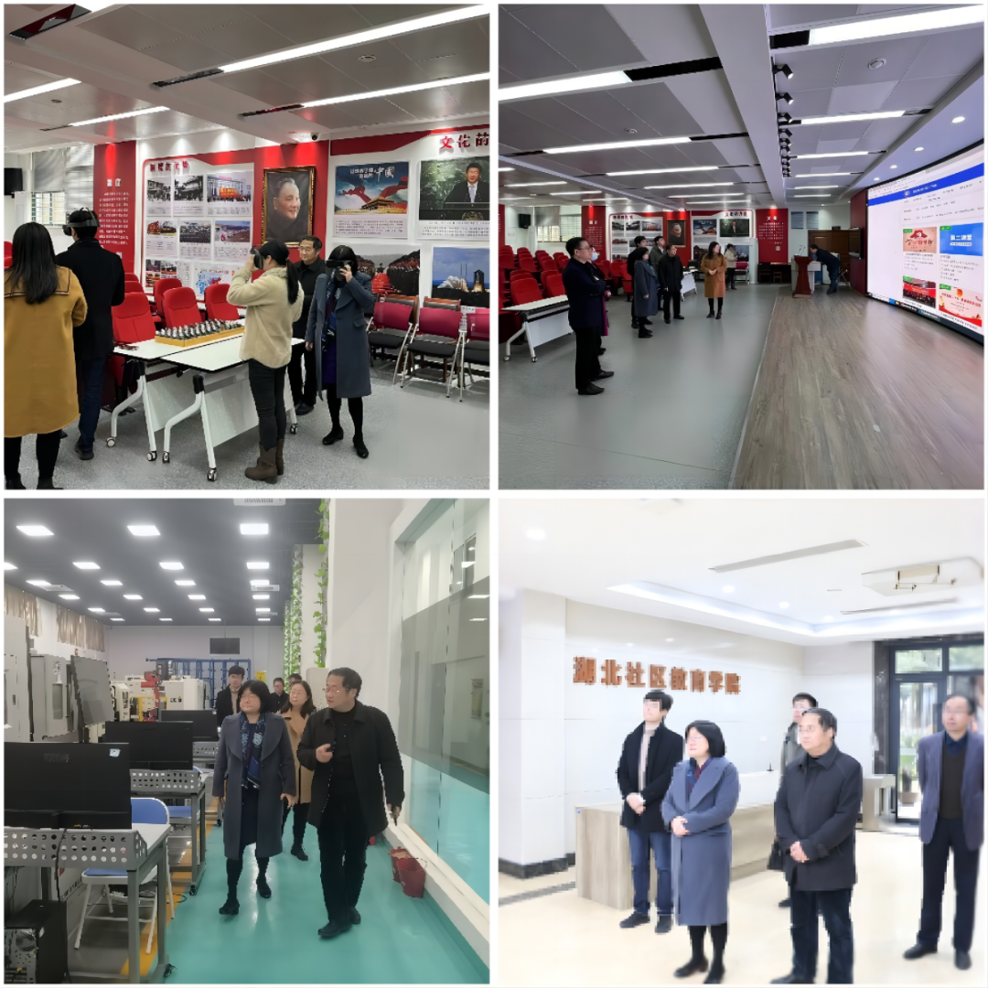 范賢睿一行實地調研了湖北開放大學馬克思主義學院、智能制造產教融合創新中心、遠程教育技術館、學分銀行、全景演播室、社區教育學院等教育教學場所。