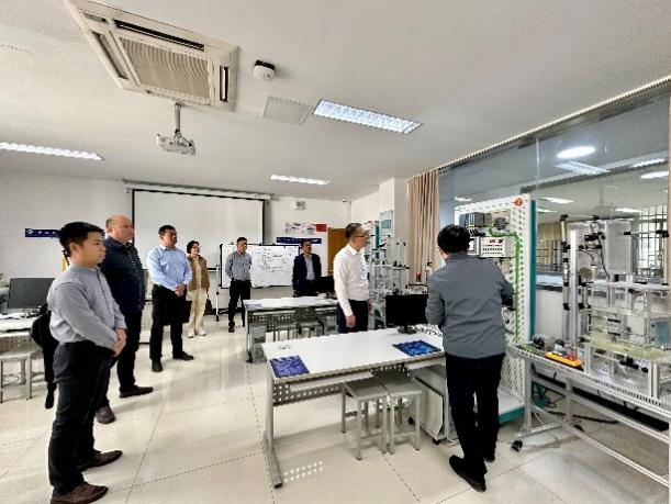在南京工業(yè)職業(yè)技術(shù)大學(xué)和南京信息職業(yè)技術(shù)學(xué)院,調(diào)研組參觀了南京工業(yè)職業(yè)技術(shù)大學(xué)智能制造產(chǎn)教融合創(chuàng)新平臺(tái)工業(yè)機(jī)器人技術(shù)訓(xùn)練中心、精雕學(xué)院、航空維修培訓(xùn)中心、城市軌道交通實(shí)驗(yàn)實(shí)訓(xùn)中心等機(jī)構(gòu),并與南京信息職業(yè)技術(shù)學(xué)院開(kāi)展交流座談,南京信息職業(yè)技術(shù)學(xué)院副校長(zhǎng)杜慶波介紹了學(xué)校虛擬實(shí)驗(yàn)實(shí)訓(xùn)建設(shè)模式和取得的成果。