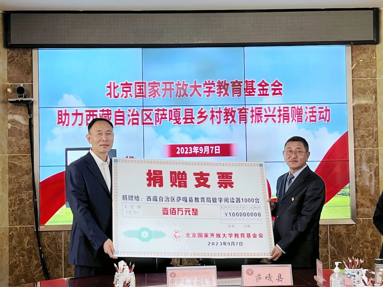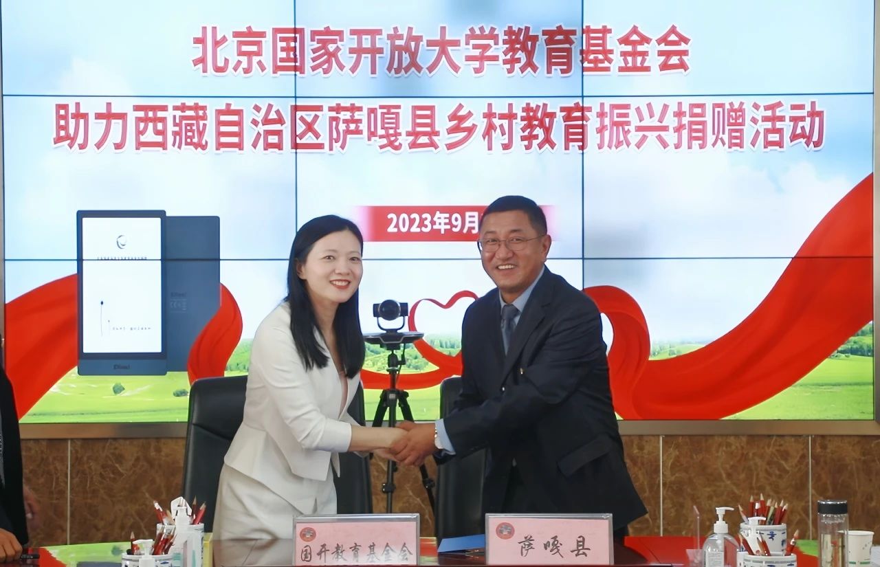 書(shū)香潤(rùn)?quán)l(xiāng)村 教育助振興——國(guó)家開(kāi)放大學(xué)教育基金會(huì)向西藏自治區(qū)薩嘎縣教育局捐贈(zèng)1000臺(tái)數(shù)字閱讀器