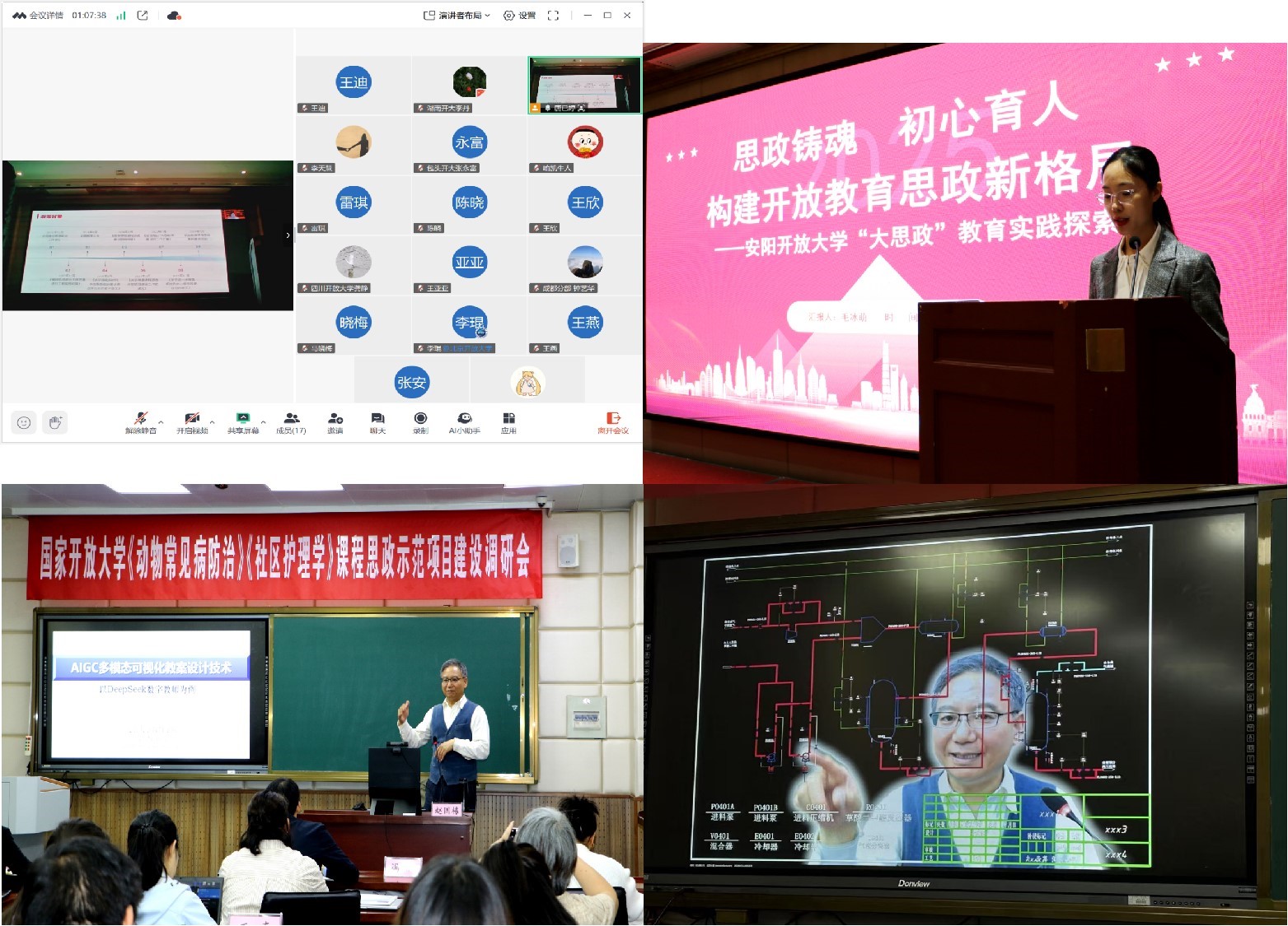 國家開放大學馬克思主義學院副院長陳鯤圍繞“開放大學專業課課程思政建設的理念革新、痛點突破與實踐突圍”作主題分享。安陽開放大學課程思政建設科毛冰萌分享了課程思政建設特色經驗與成果。北京大學教授趙國棟以《AIGC 多模態可視化教案設計技術——以DeepSeek數字教師為例》為題作專題講座。