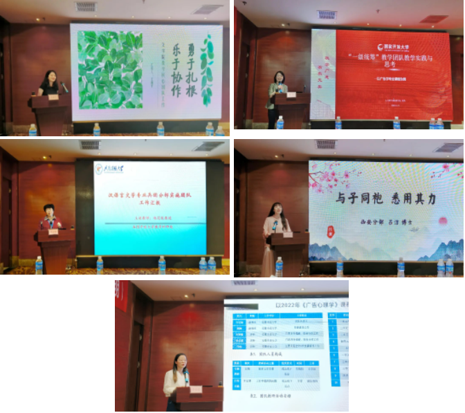 國家開放大學(xué)教務(wù)部副部長申娟以《以教學(xué)團(tuán)隊(duì)建設(shè)為抓手促進(jìn)高質(zhì)量教育教學(xué)》為題,全面梳理了學(xué)校專業(yè)設(shè)置的歷史與現(xiàn)狀,深入解讀了教學(xué)團(tuán)隊(duì)的職責(zé)與工作流程,并結(jié)合團(tuán)隊(duì)運(yùn)行過程中的共性問題,介紹了下一步團(tuán)隊(duì)改革的工作規(guī)劃與構(gòu)想。人文教學(xué)部副部長胡正偉以《新文科視域下開放教育人文類學(xué)科建設(shè)探索》為題,分享了對中文、傳媒等人文類學(xué)科專業(yè)的新文科發(fā)展方向的思考,勾勒了職業(yè)化面向驅(qū)動(dòng)課程體系改革、基于團(tuán)隊(duì)探索課程教學(xué)法革新、由辦學(xué)歷史謀求辦學(xué)層次提升、藉核心素養(yǎng)塑造調(diào)適專業(yè)站位的主要路徑。文學(xué)院副院長徐笑笑以《傳統(tǒng)中文專業(yè)的職業(yè)化與現(xiàn)代化》為題,匯報(bào)了文學(xué)院的專業(yè)教學(xué)改革實(shí)踐與成果,并介紹了在漢語言文學(xué)專業(yè)尋求內(nèi)涵突破的思路。傳媒學(xué)院副院長于慶堯以《新媒體時(shí)代傳媒類專業(yè)教學(xué)改革與專業(yè)建設(shè)探索》為題,匯報(bào)了傳媒學(xué)院的教學(xué)改革實(shí)踐與成果,介紹了網(wǎng)絡(luò)與新媒體專業(yè)的課程體系、建設(shè)思路及下一步深化改革的思路。