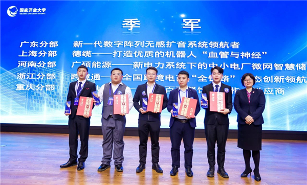 現(xiàn)場(chǎng)賽分為路演環(huán)節(jié)和答辯環(huán)節(jié),評(píng)審專(zhuān)家從教育維度、商業(yè)維度、創(chuàng)新維度、團(tuán)隊(duì)維度、社會(huì)價(jià)值維度及現(xiàn)場(chǎng)表現(xiàn)維度等六個(gè)方面進(jìn)行評(píng)分。最終,來(lái)自青島分部的作品《酷泰——打造中國(guó)工業(yè)散熱出海第一品牌》獲得冠軍;來(lái)自武漢、西安、湖南等3所分部的作品獲得亞軍;來(lái)自廣東、上海、河南、浙江、重慶等5所分部的作品獲得季軍。重慶分部作品《極鮮供應(yīng)鏈——中國(guó)百?gòu)?qiáng)餐飲品牌指定供應(yīng)商》獲得最具人氣獎(jiǎng);河南分部作品《廣碩能源——新電力系統(tǒng)下的中小電廠(chǎng)微網(wǎng)智慧儲(chǔ)能》獲得最具商業(yè)價(jià)值獎(jiǎng);西安分部作品《“外婆的禮物”創(chuàng)業(yè)養(yǎng)老公益活動(dòng)——讓勞動(dòng)更有價(jià)值 讓生命更有尊嚴(yán)》獲得最具社會(huì)價(jià)值獎(jiǎng)。