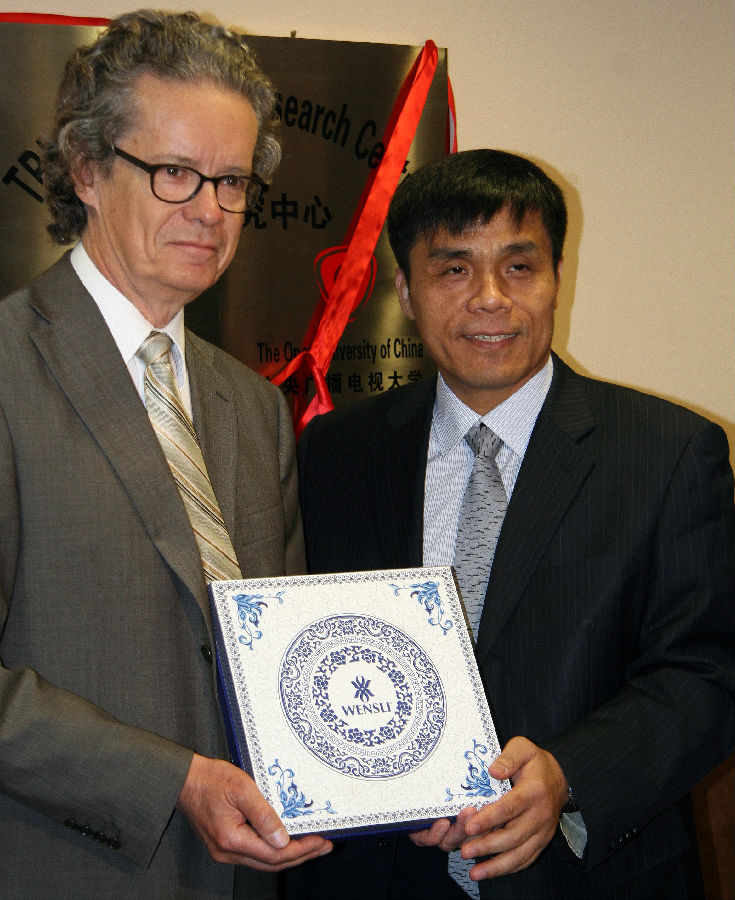 2010年11月,中央電大與湯姆遜大學簽訂合作意向書,同時舉行了中央電大與湯姆遜大學合作研究中心(OUC-TRU Joint Research Centre)揭牌儀式。