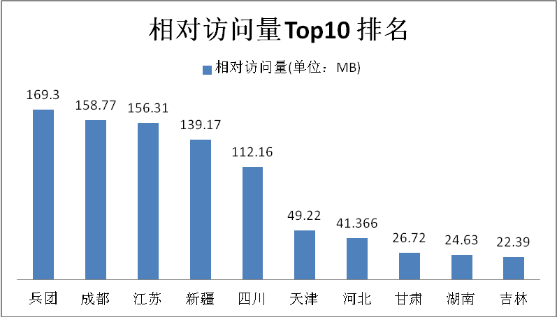 表2顯示了每千人的相對(duì)請(qǐng)求數(shù),排名前5位的地區(qū)為成都、江蘇、兵團(tuán)、四川、天津,成都的相對(duì)請(qǐng)求數(shù)較其他地區(qū)明顯較多。