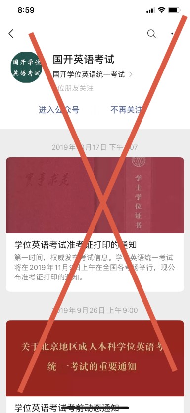 圖2 冒用國家開放大學學位英語考試名義發布推廣的微信公眾號